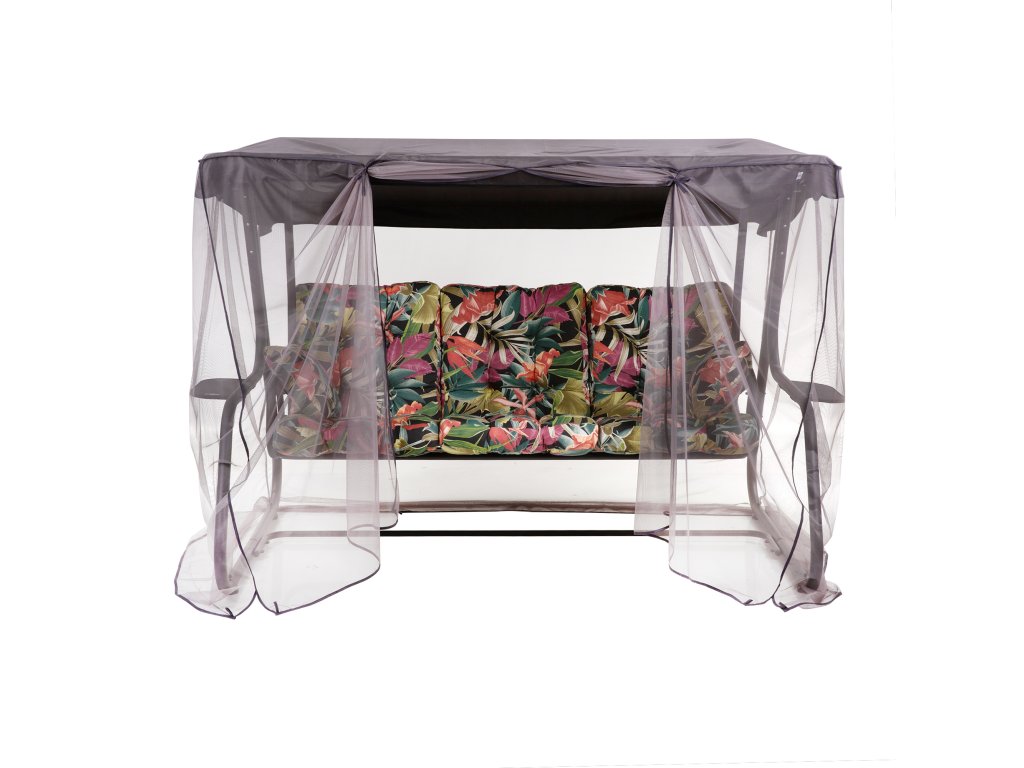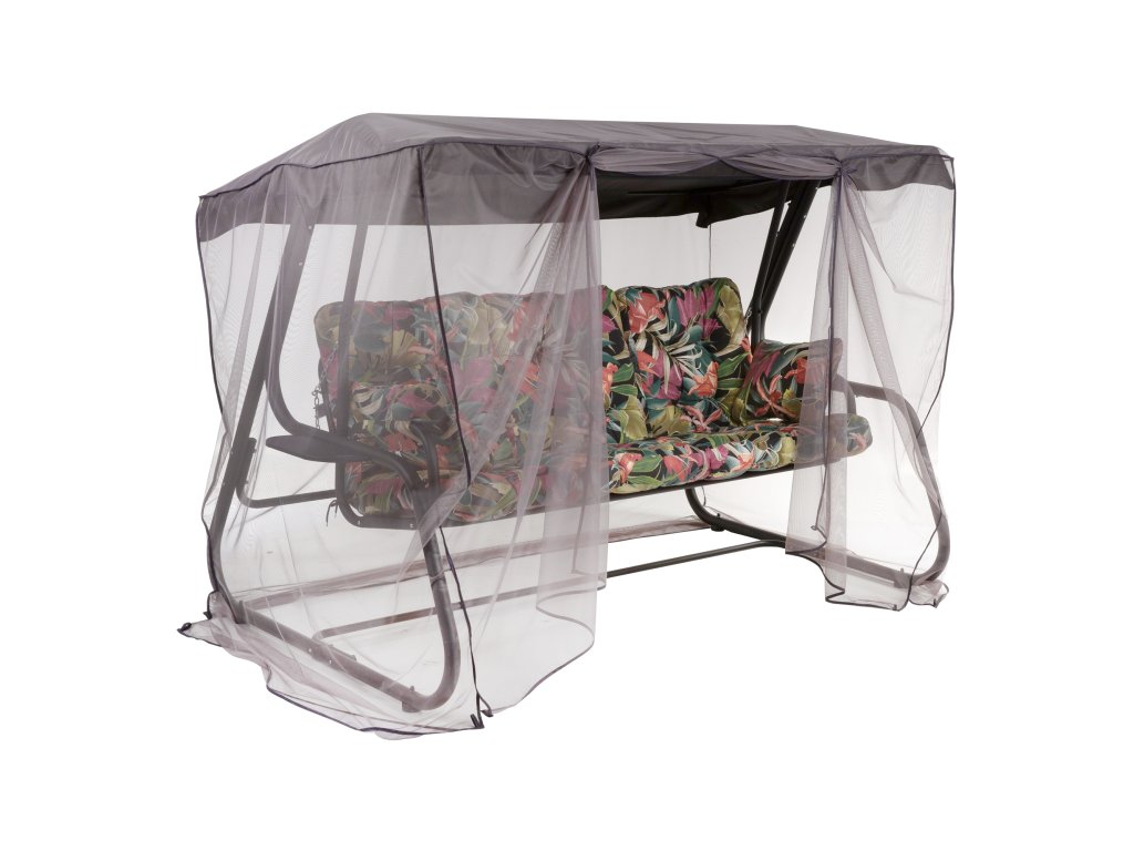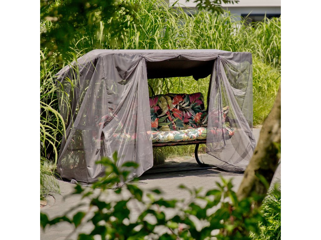 Zahradní houpačka s černým rámem. Posuňte svou relaxaci na vyšší úroveň s naší zahradní houpačkou, která nabízí nejen pohodlí, ale i ochranu před nepřízní počasí. Zahradní houpačka Celebes je vybavena měkkými barevnými sedáky s rostlinným motivem na černém podkladu, které dodají vaší zahradě kouzlo a styl. Díky stříšce a moskytiéře si můžete užívat čas venku bez obav ze slunce nebo hmyzu. Odkládací boční stolky, které jsou součástí sady, navíc poskytují pohodlné místo pro vaše oblíbené nápoje a občerstvení. Sedadlo houpačky lze rozložit do polohy vleže na zádech a umožnit tak odpočinek až pro 2 dospělé osoby. Ponořte se do měkkých polštářů, relaxujte a odpočívejte. Sada 3 silných sedáků a přídavné područky jsou vyplněné řezanou houbičkou Flocke a zaručují dobrý odpočinek. Vrch i spodek sedáků je vyroben ze 100% polyesterového mikrovlákna, které je velmi příjemné na dotek. Rám houpačky Celebes je vyroben z práškově lakované oceli v matné černé barvě, díky čemuž je nejen trvanlivý, ale také odolný vůči měnícím se povětrnostním podmínkám, jako je slunce nebo déšť a má výšenou odolnost proti poškrábání.