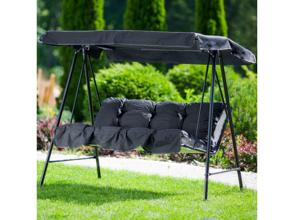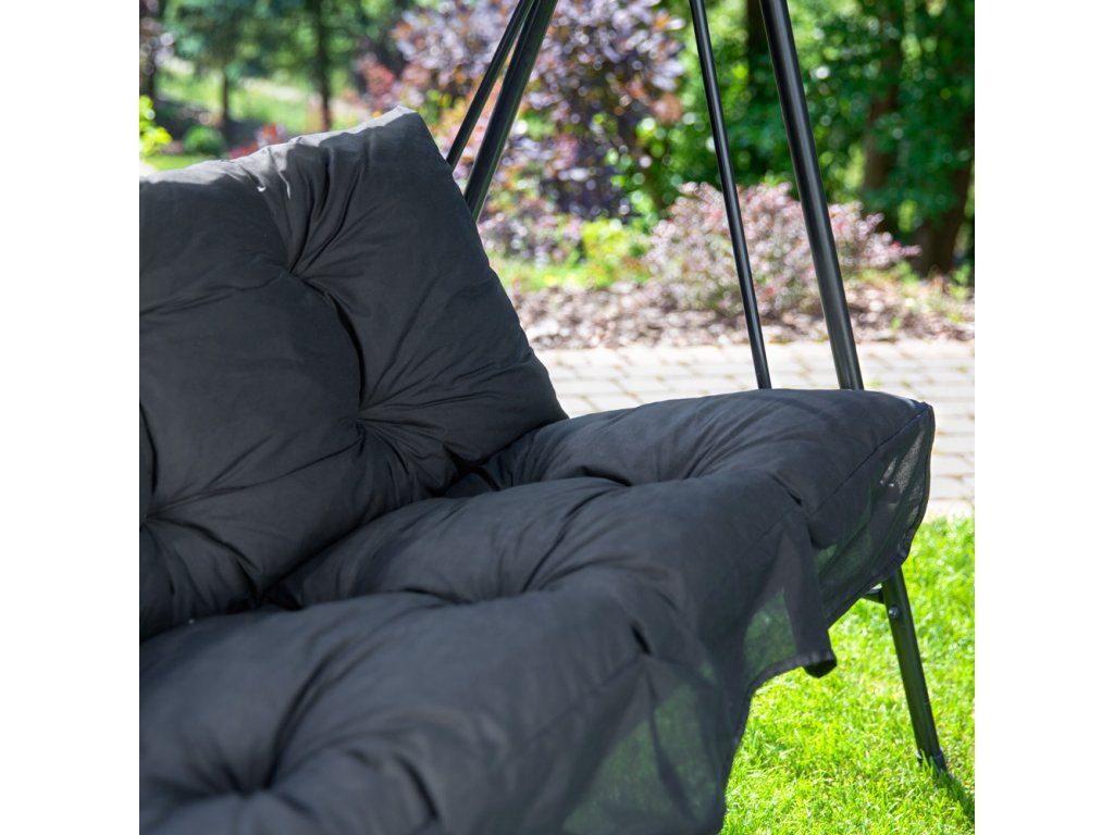 Menší zahradní houpačka Tora od výrobce Patio je vybavena poduškami a stříškou v minimalistické antracitové barvě, která skvěle zapadne do jakéhokoliv zahradního uspořádání. Vytvoříte si díky ní dokonalé místo pro odpočinek v teplých dnech. Ocelový rám a pohodlné, silné podušky zajistí skvělé pohodlí při relaxaci a stříška účinně ochrání před slunečními paprsky. Houpačka pojme 2-3 osoby a skvěle poslouží nejen na zahradě, ale i na terase. Sedadlo houpačky NENÍ MOŽNÉ rozložit do polohy vleže na zádech.