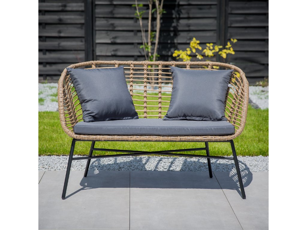 Lavice Danielle je vyrobena z plastového materiálu imitujícího ratan, z tzv. technorattanu. Technorattan je vysoce odolný vůči měnícím se povětrnostním podmínkám (UV záření). Konstrukce je vyrobena z oceli (22 x 0,8 mm i 19 x 0,8 mm), je práškově lakovaná. Materiály použité na výrobu lavičky ji poměrně odlehčují a neměl by být problém při jejím usazování či případném přemisťování. Lavici se doporučuje používat na rovném a tvrdém povrchu. Případné znečištění polyratanových a ocelových prvků lze snadno odstranit vlhkým hadříkem. Lavice má polštáře z polyesterové tkaniny, které jsou vybaveny zipsem, který umožňuje pohodlné sejmutí povlaků, když je potřeba je vyprat nebo vyměnit. Lavici chraňte před vlhkostí. Barva ratanu: béžová Barva podušek: antracit Maximální zatížení: do 200 kgTechnické parametry: