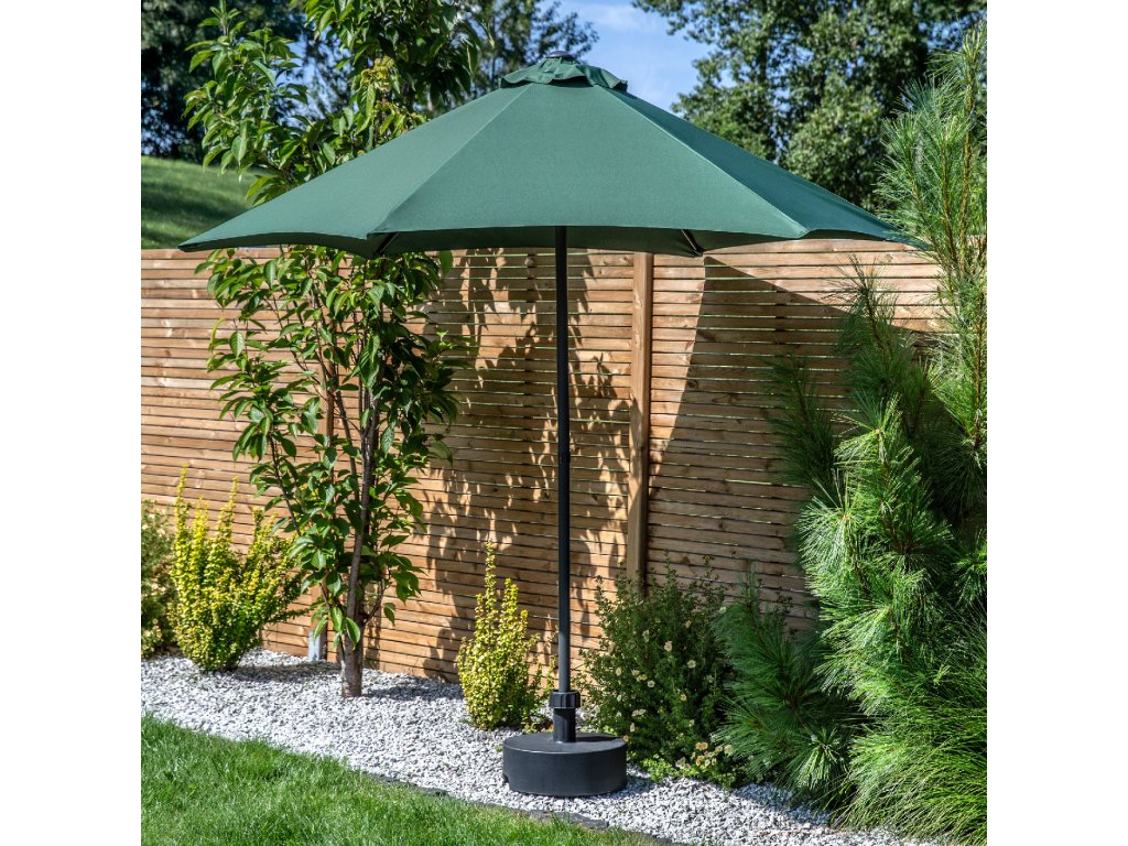 Vezměte prosím na vědomí, že tento zahradní slunečník Patio je dodáván bez podstavce. Kompatibilní podstavec, který zajistí jeho stabilní umístění, si můžete snadno zakoupit přímo na našich stránkách.