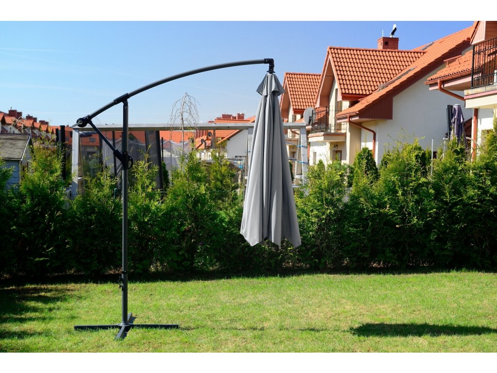 Velký, velmi praktický zahradní slunečník o průměru až 3 metry. Odolná ocelová konstrukce, nastavitelná výška a sklon stříšky, rychle se složí a rozloží. Nejvyšší kvalita a kvalitní zpracování zajistí ochranu před sluncem a deštěm. Když slunečník nepoužíváte, vždy jej složte. Předejdete tak poškození při náhle změně povětrnostních podmínek. Při silných poryvech větru slunečník nerozkládejte, mohlo by dojít k poškození konstrukce. Pro zvýšení stability slunečníku je nutné zatížit základnu betonovými bloky nebo jinou zátěží, aby byla zaručena dostatečná stabilita.