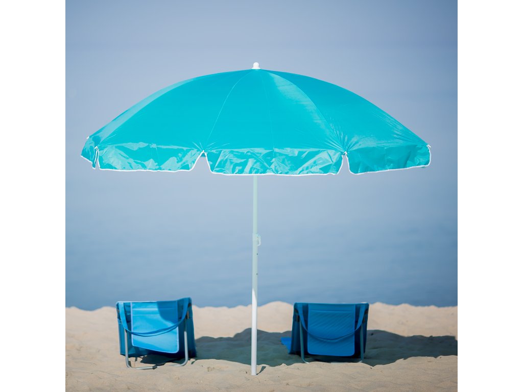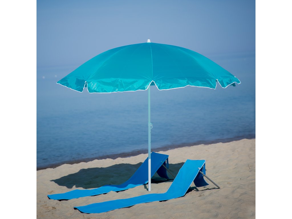 Zahradní slunečník Poly - nezbytný v zahradě nebo na terase, skvělý také na pláž. Slunečník má dvoudílný kovový rám, skládací - trubky o průměru 28 a 32 mm, které lze napojit do sebe a uchytit pomocí šroubu, což usnadňuje uskladnění slunečníku. Slunečník má 8 ramen, k nim je připojena plachta z polyesteru 170T. Slunečník se rychle skládá a rozkládá a po složení nezabírá mnoho místa. Barva stříšky: blankytná Podstavec není součástí nabídky. Můžete si ho zakoupit zvlášť.