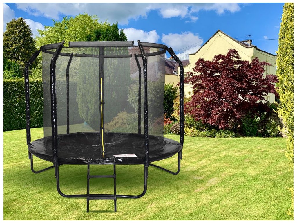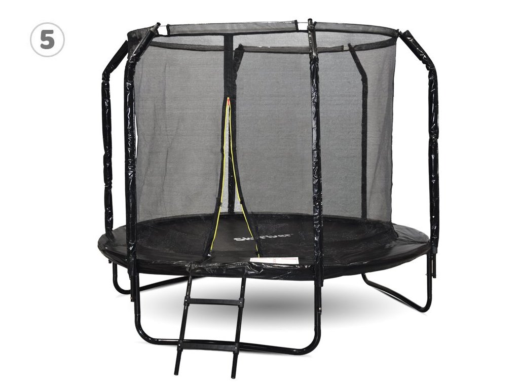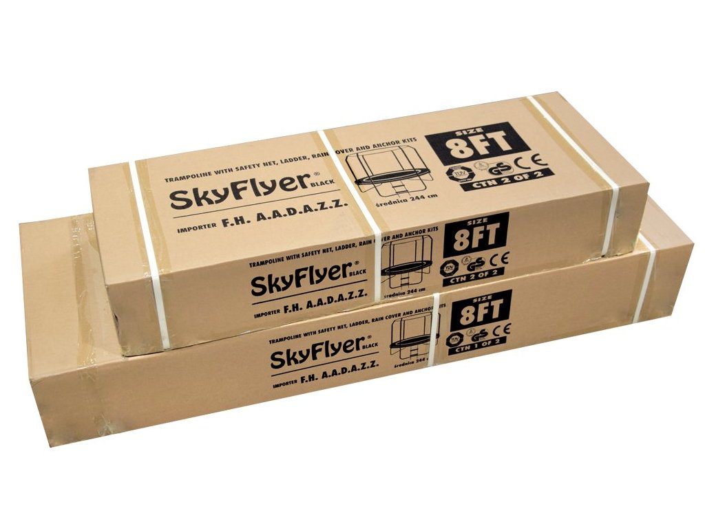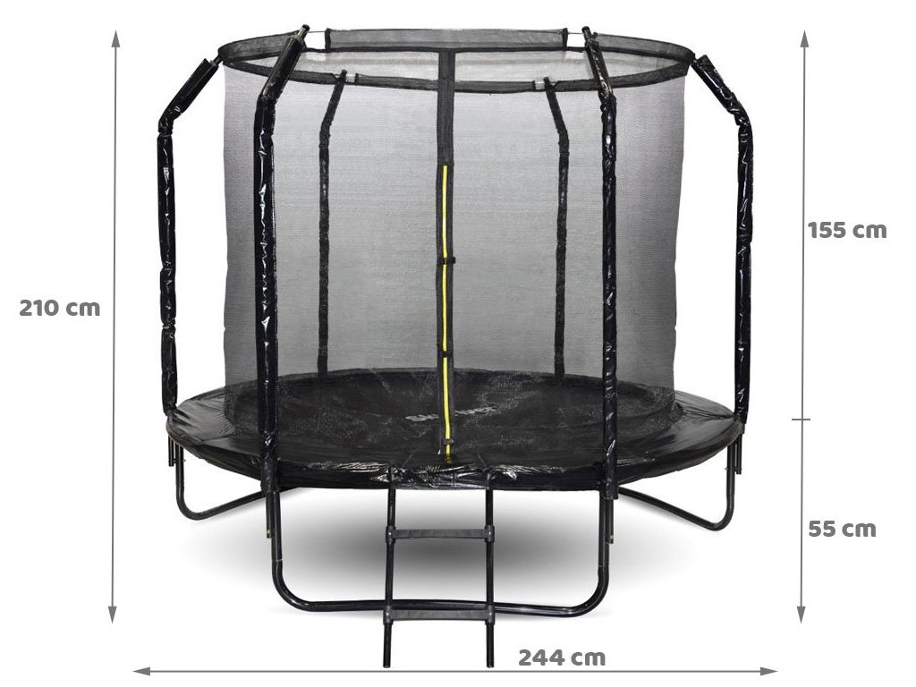 Zahradní trampolína SkyFlyer Black 244 cm se sítí a profilovanými sloupky je nabídkou pro všechny, kteří mají rádi a oceňují dobrý pohyb. Je všeobecně známo, že cvičením posiluje zdraví, zvyšuje endorfiny, pozitivní přístup - vše je dobré. Proto je taková trampolína ve vaší zahradě fantastickým motivátorem k pohybu vašeho vlastního těla! Není na co čekat - tato trampolína umožní vám i vašim dětem být ve skvělé kondici a formě. Při výběru trampolíny byste měli vzít v úvahu počet dětí hrajících si na trampolíně. Velikost trampolíny 244 cm bude stačit pro jedno nebo dvě děti. Taková trampolína bude bezpečná, nezabere mnoho místa a zábava bude neskutečná. Místo pro trampolínu musí být rovné, bez stromů a větví nad trampolínou. Stačí tedy metrem označit prostor určený pro trampolínu, abyste si vizuálně představili prostor, který trampolína zaujme. Pravidlem je, že čím větší je velikost, tím větší je prostor pro skákání. Trampolína se dodává ve dvou kartonech - krabicích.