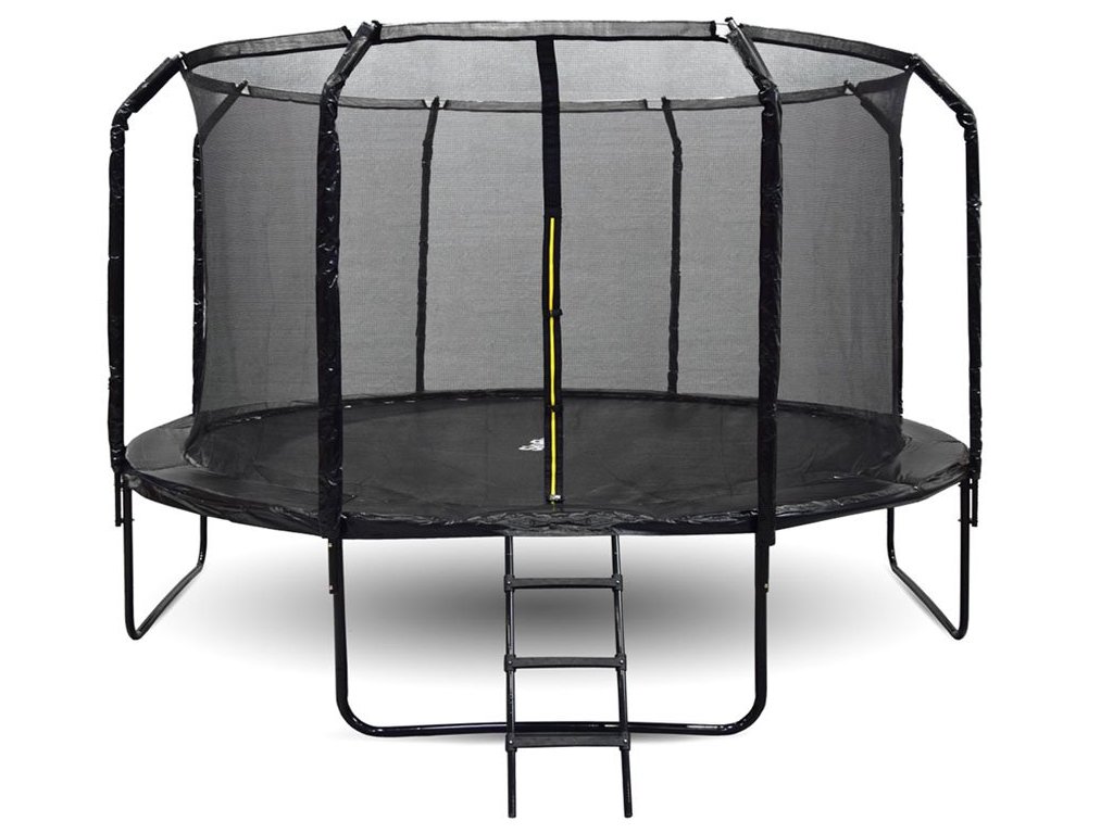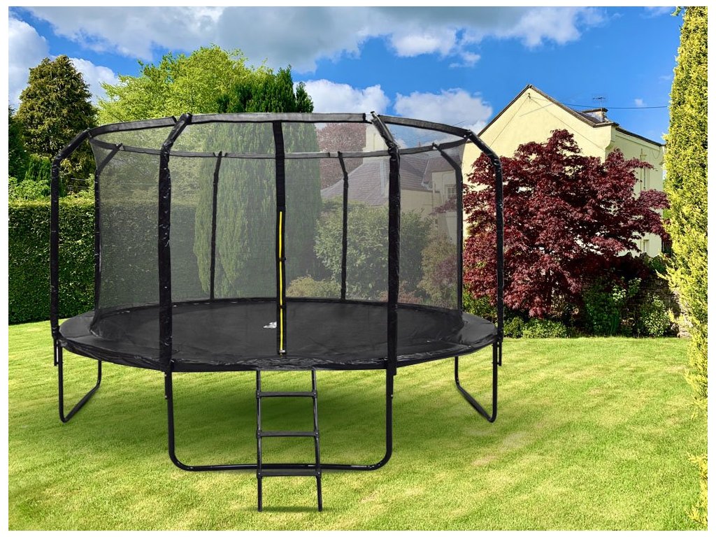 Zahradní trampolína SkyFlyer Black 426 cm se sítí a profilovanými sloupky je nabídkou pro všechny, kteří mají rádi a oceňují dobrý pohyb. Je všeobecně známo, že cvičením posiluje zdraví, zvyšuje endorfiny, pozitivní přístup - vše je dobré. Proto je taková trampolína ve vaší zahradě fantastickým motivátorem k pohybu vašeho vlastního těla! Není na co čekat - tato trampolína umožní vám i vašim dětem být ve skvělé kondici a formě. Při výběru trampolíny byste měli vzít v úvahu počet dětí hrajících si na trampolíně. Velikost trampolíny 426 cm bude perfektní i pro pět nebo i šest dětí. Taková trampolína bude bezpečná, nezabere mnoho místa a zábava bude neskutečná. Místo pro trampolínu musí být rovné, bez stromů a větví nad trampolínou. Stačí tedy metrem označit prostor určený pro trampolínu, abyste si vizuálně představili prostor, který trampolína zaujme. Pravidlem je, že čím větší je velikost, tím větší je prostor pro skákání. Trampolína se dodává ve dvou kartonech - krabicích.