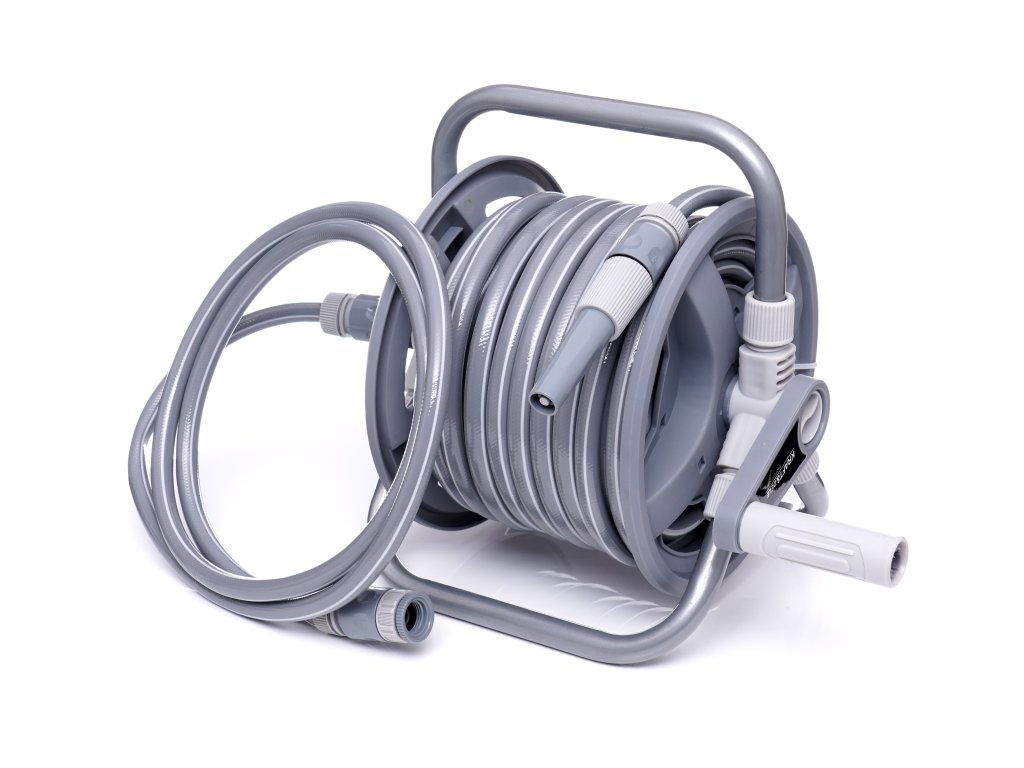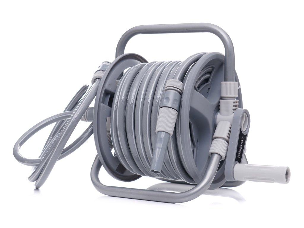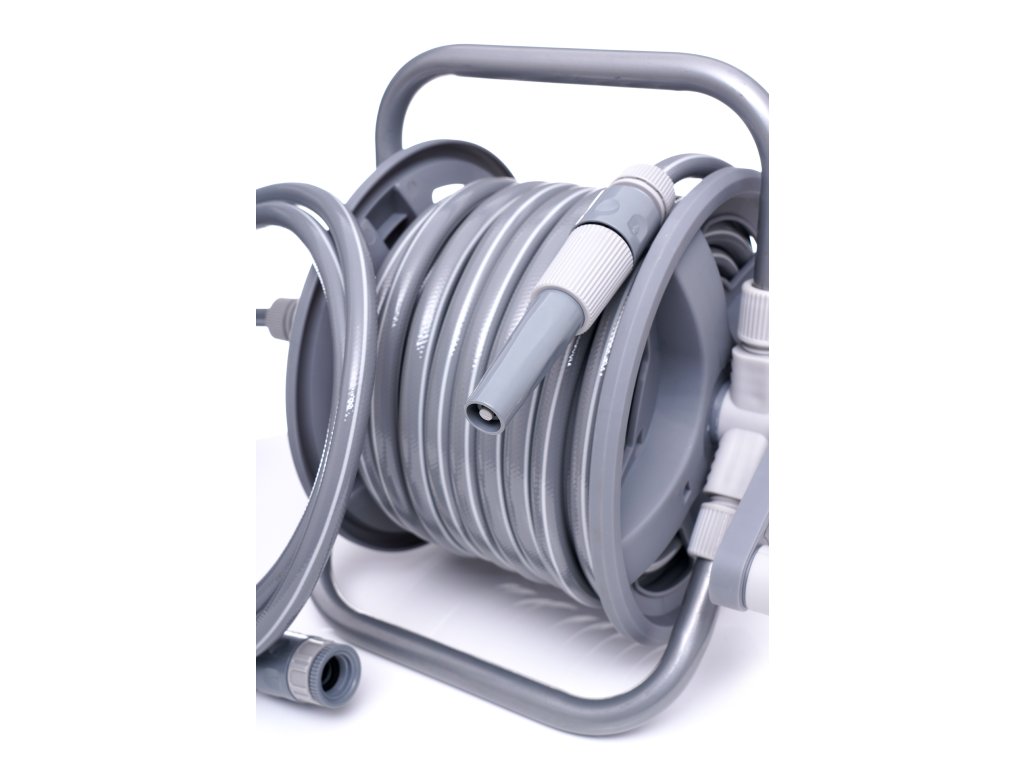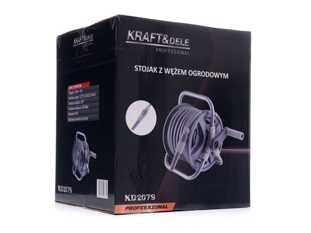 Stojan na zahradní hadici KD2079, je ideálním zařízením pro zahradníky, kteří oceňují rychlé a bezproblémové zavlažování. Stojan je vyroben z vysoce kvalitního hliníku, díky čemuž je odolný vůči korozi a světlu. Hadice o délce 20 m a průměru 1/2" (3 vrstvy), vyrobená z PVC materiálu odolného vůči UV záření.