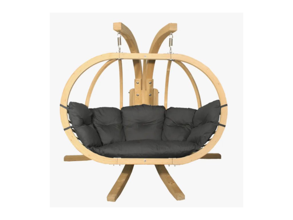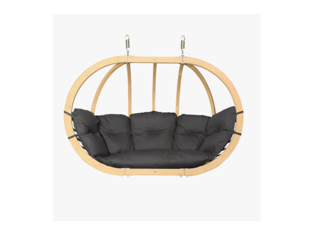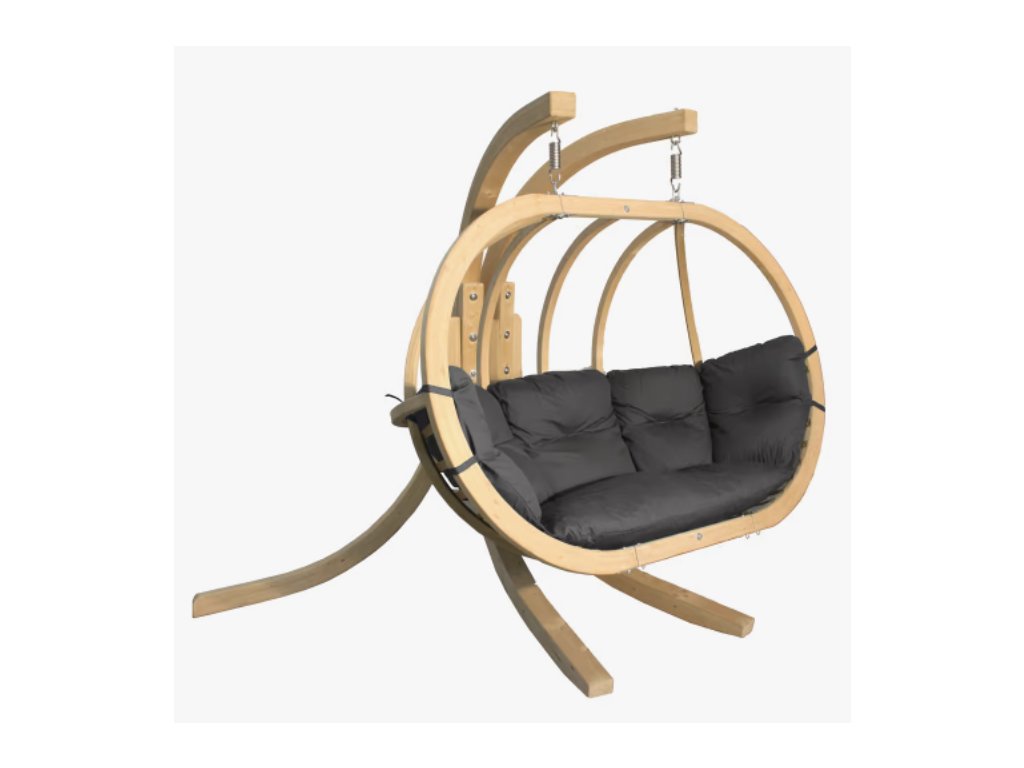 Závěsné křeslo Swing Pod XL značky Czillo se sedáky v grafitovém odstínu zaujme jedinečností svého designu a komfortem používání nábytku, vyrobeného z odolných materiálů nejvyšší kvality. Křešlo se doporučuje pro všechny roční období a do všech typů interiérových a zahradních aranžmá. Skvěle se bude hodit jako místo k odpočinku v obývacím pokoji, na terase nebo na zahradě, ale i v prostorách hotelu, kavárny nebo SPA. Rám koše a stojanu je vyroben z impregnovaného vrstveného smrkového dřeva. Křeslo je vybaveno pohodlným polštářem, vyplněným PUR pěnou a čalouněno 100 % polyesterovou tkaninou Cleanaboo, která je odolná vůči nečistotám. Závěsné křeslo je pro dvě osoby.