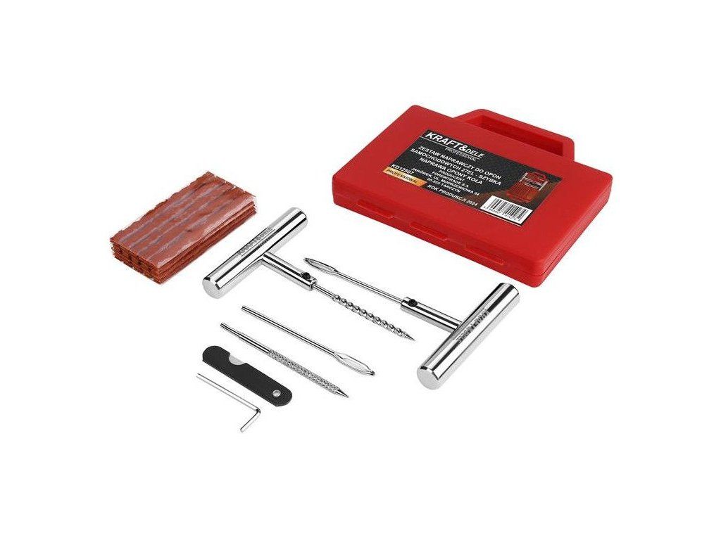 Zestaw naprawczy do opon KD12507 marki Kraft&Dele to niezastąpione narzędzie w każdym garażu, warsztacie oraz podczas podróży. Umożliwia szybką i skuteczną naprawę przebitych opon bez konieczności ich demontażu z felgi.