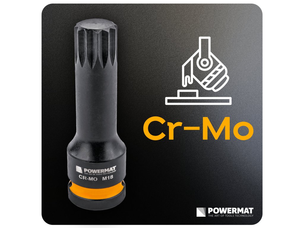 Wykorzystana stal chromowo-molibdenowa Cr-Mo została zaprojektowana do pracy z udarem i wysokim momentem obrotowym. Dzięki temu pracujesz bezpiecznie, a nasadki zachowują trwałość nawet przy intensywnym użytkowaniu.