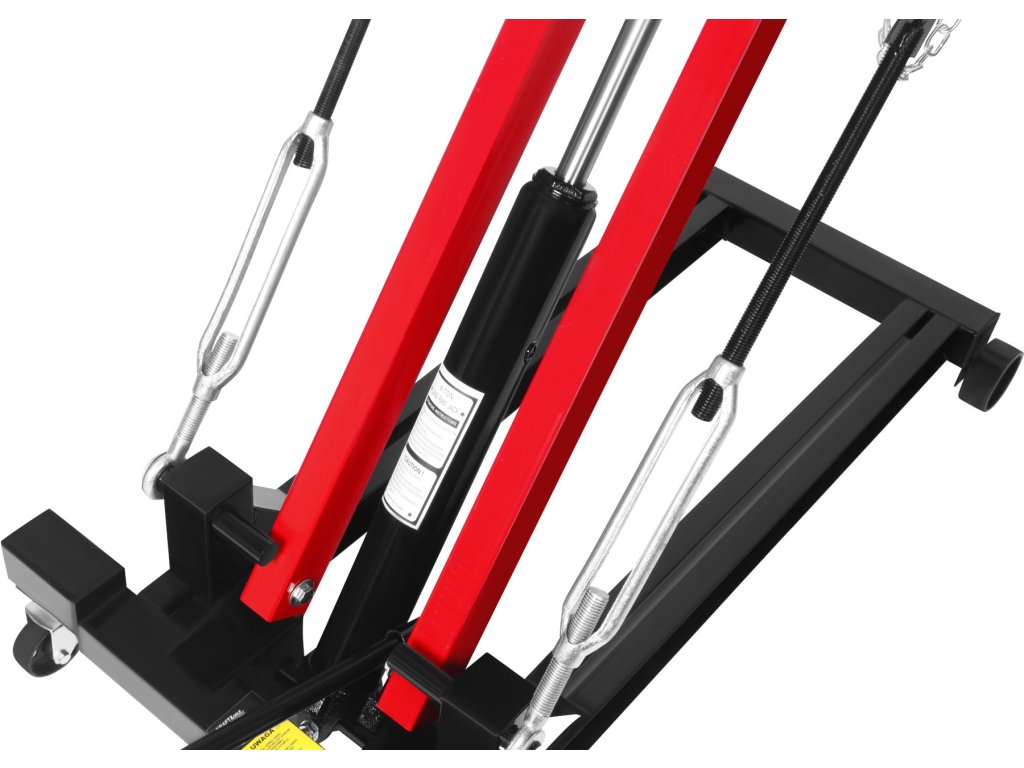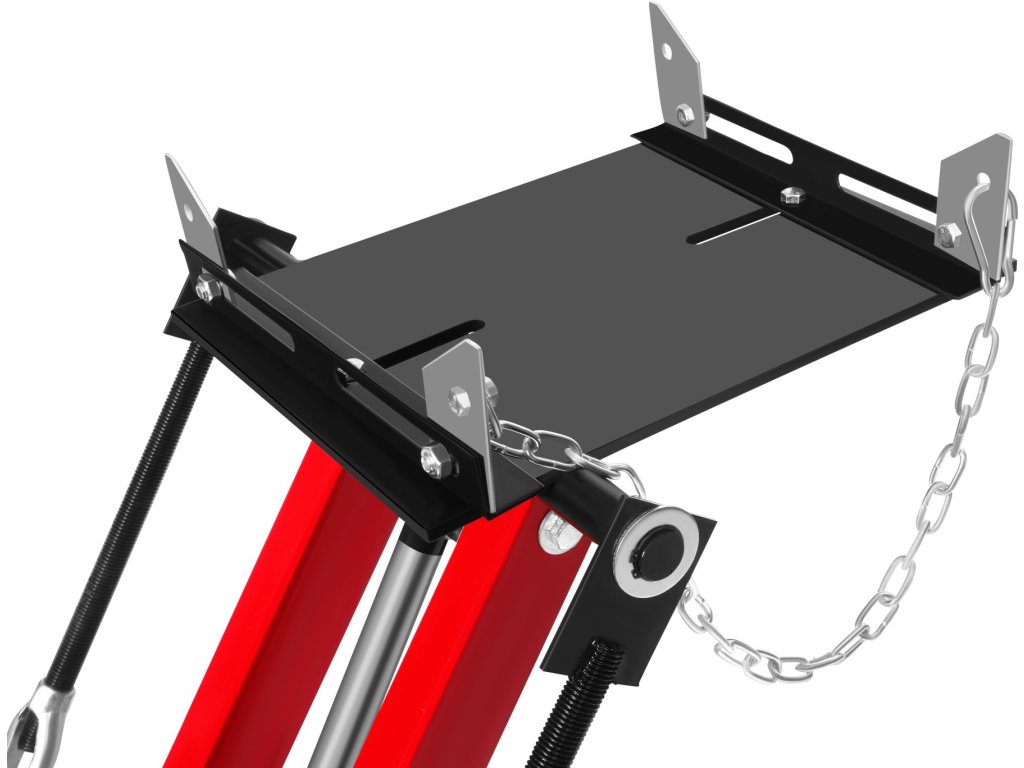 S nosností až 2000 kg si KD12683 poradí i s těmi nejnáročnějšími úkoly. Jeho pevná ocelová konstrukce, doplněná výkonným hydraulickým systémem, zaručuje dlouhou životnost a stabilitu při každém použití. Díky možnosti nastavení úhlu montážní desky pomocí dvou šroubů s okem dosáhnete maximální přesnosti při polohování demontovaných či montovaných dílů. Nastavitelné úchyty s řetězem navíc zajistí absolutně bezpečné upevnění převodovky během celé operace, čímž minimalizují riziko poškození nebo zranění.